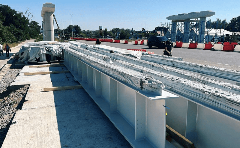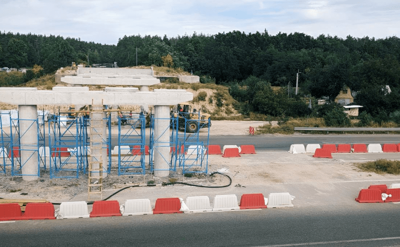 Наразі вже завершено комплекс робіт з армування і бетонування ригелів та підферменників опор, далі відбудеться монтаж прогонових металевих балок.