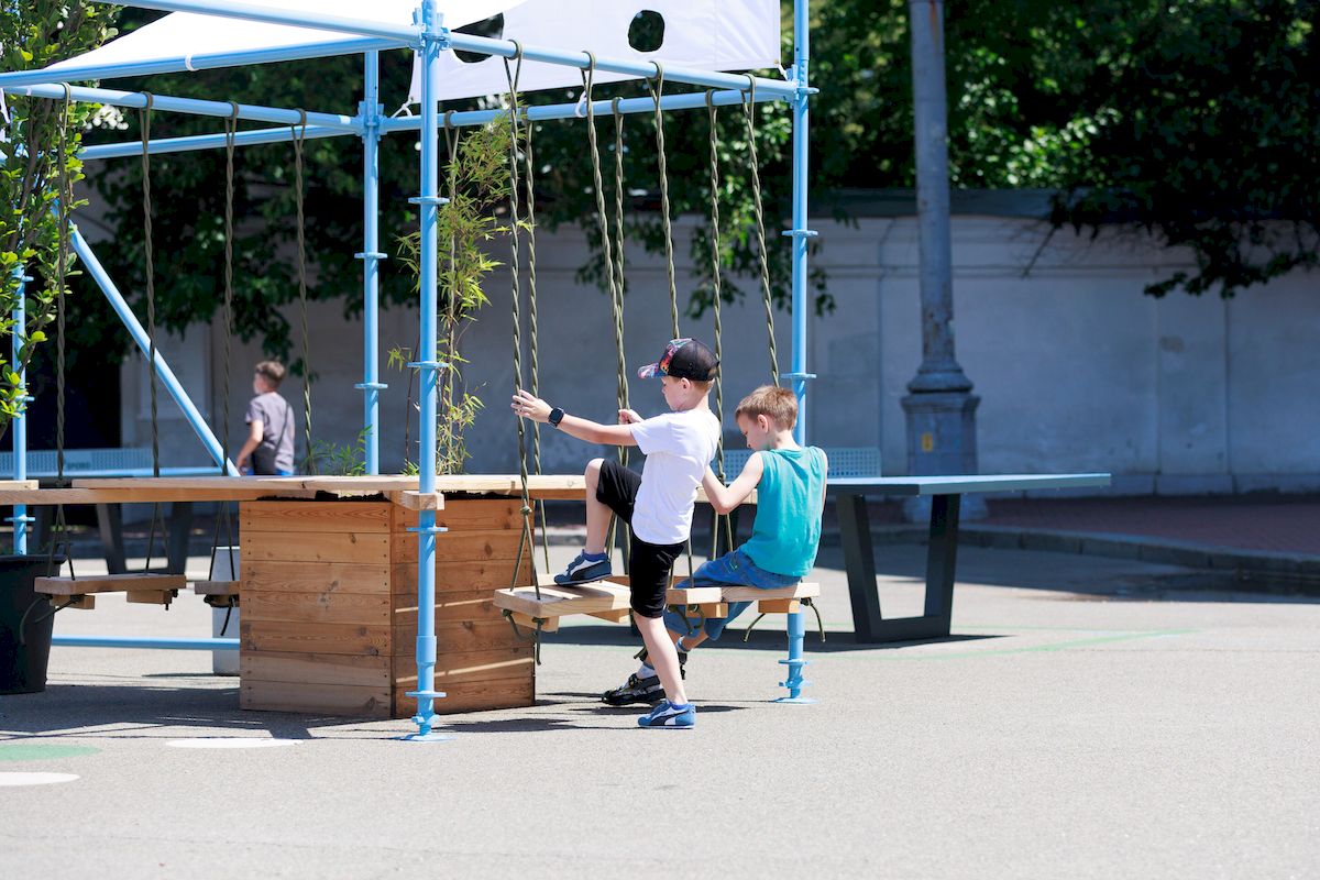 Новостворений майданчик доступний для всіх охочих. Тут облаштували зони з різноманітними активностями: гойдалки, ігрові та спортивні майданчики, рампи для скейтбордингу тощо. А на асфальті створили величезний малюнок "Квітка життя", вздовж якого встановили лави для відпочинку та дерева у кашпо для затінку.