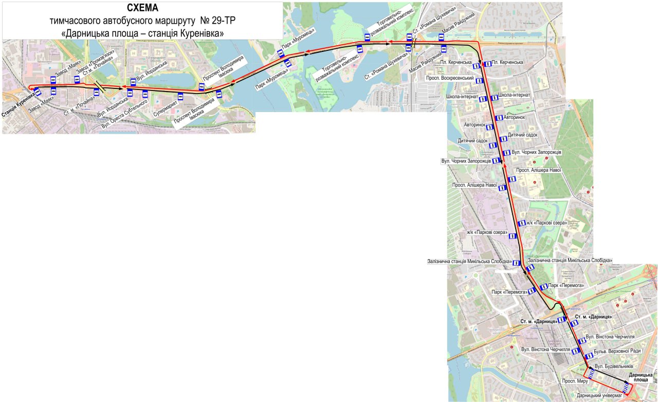 - 29тр – Дарницька пл. – зал. ст. "Куренівка";