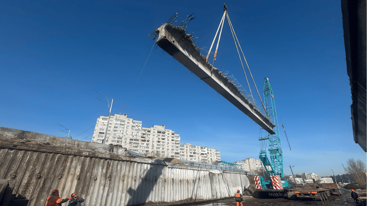Комунальники розбирають старі конструкції шляхопроводу: наразі вже демонтували зношене мостове полотно та 51 балку прогонової будови. Зараз проводять демонтаж інших конструктивних елементів споруди.