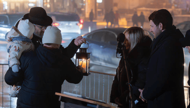 У церемонії запалення першої свічки взяли участь раввини, посол Аргентини, тимчасово повірені у справах посольств Канади та Болгарії в Україні, представники дипломатичних місій Великобританії та Франції.