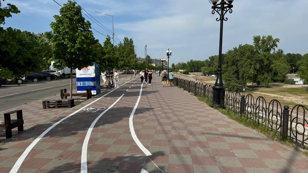 Адже правильно облаштована велодоріжка має бути не просто намальованою фарбою на тротуарі, а відокремленою фізично від нього (буфером або рядом дерев) та мати інше покриття.