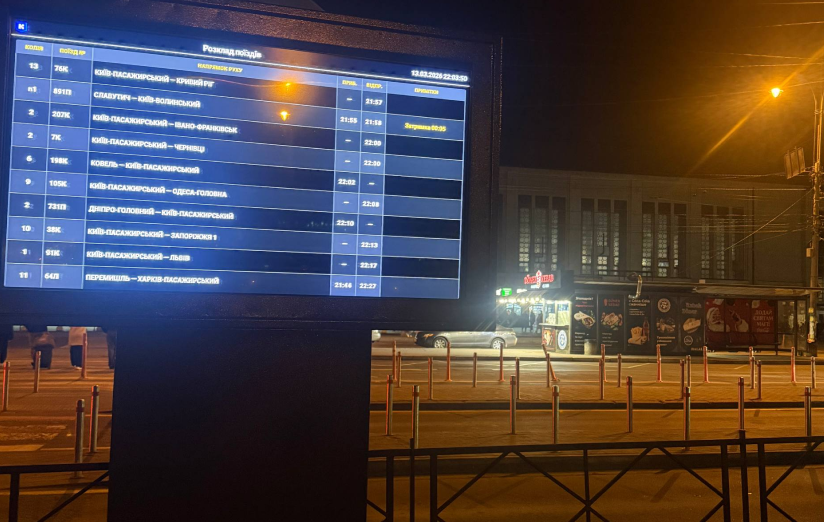 На паркінгу біля вокзалу Києва з'явився екран з інформацією про рейси