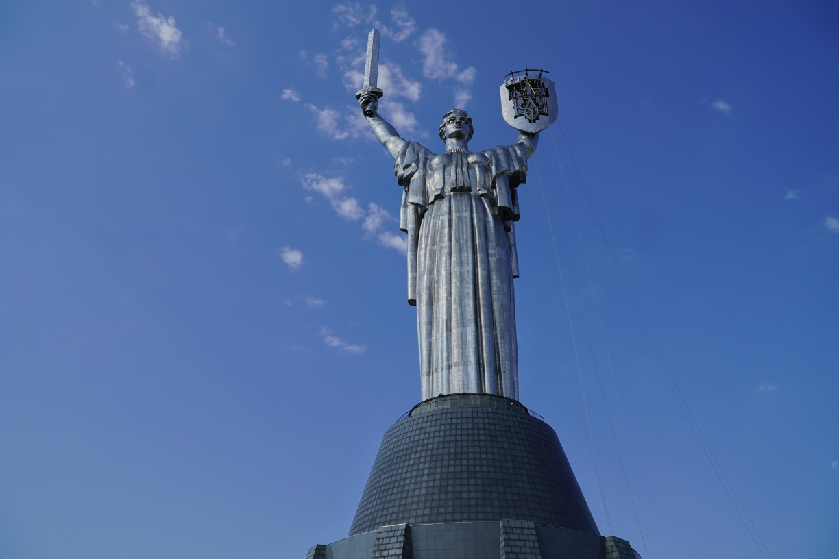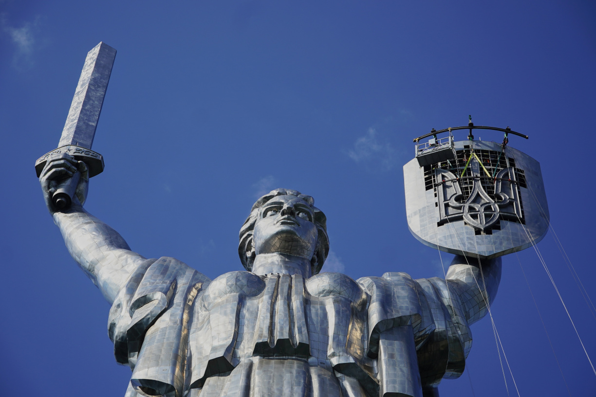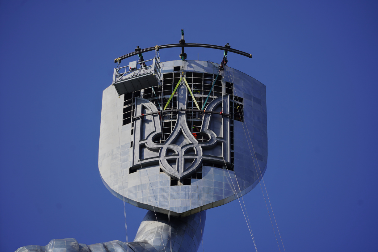 Сьогодні, 6 серпня, на монумент "Батьківщина-Мати" підняли сталевий український тризуб. Підняття українського герба відбулося рано вранці. Це сталося в межах проєкту "Тризуб Батьківщини" та процесу декомунізації.