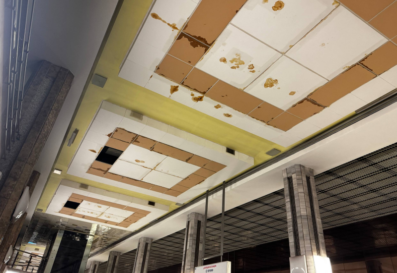 На станції метро "Іподром" від вологи набухла підвісна стеля: фото