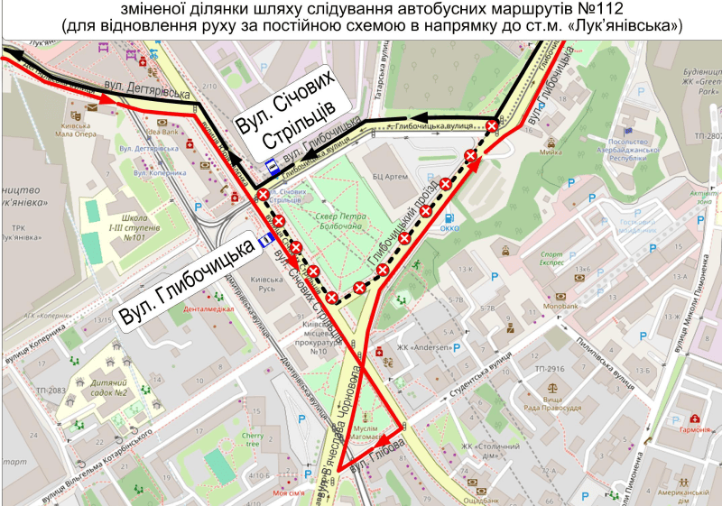 Також вулицею знову курсує автобус № 112 "Вул. Микитенка — ст. м. "Лук'янівська".