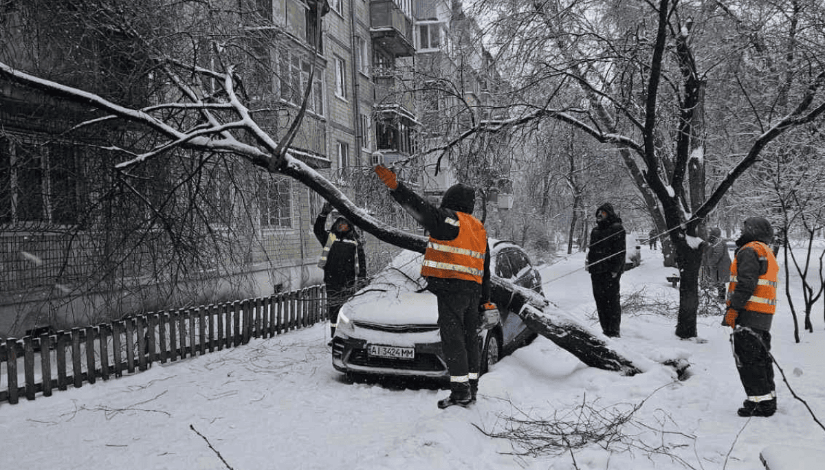Вчора комунальники працювали у посиленому режимі, 257 працівників та 41 одиниця техніки були залучені до прибирання повалених й пошкоджених дерев, а також очищення тротуарів та проїжджих частин. За інформацією "Київзеленбуду":