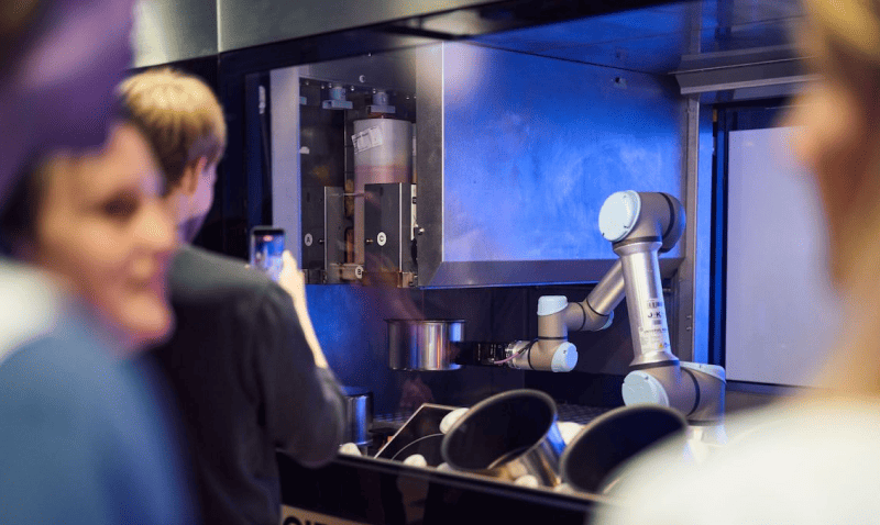 Система автоматично регулює швидкість перемішування залежно від типу страви, а вбудовані датчики в режимі реального часу відстежують зміну інгредієнтів. Вона навіть сама автоматично очищує та дезінфікує обладнання між приготуваннями.