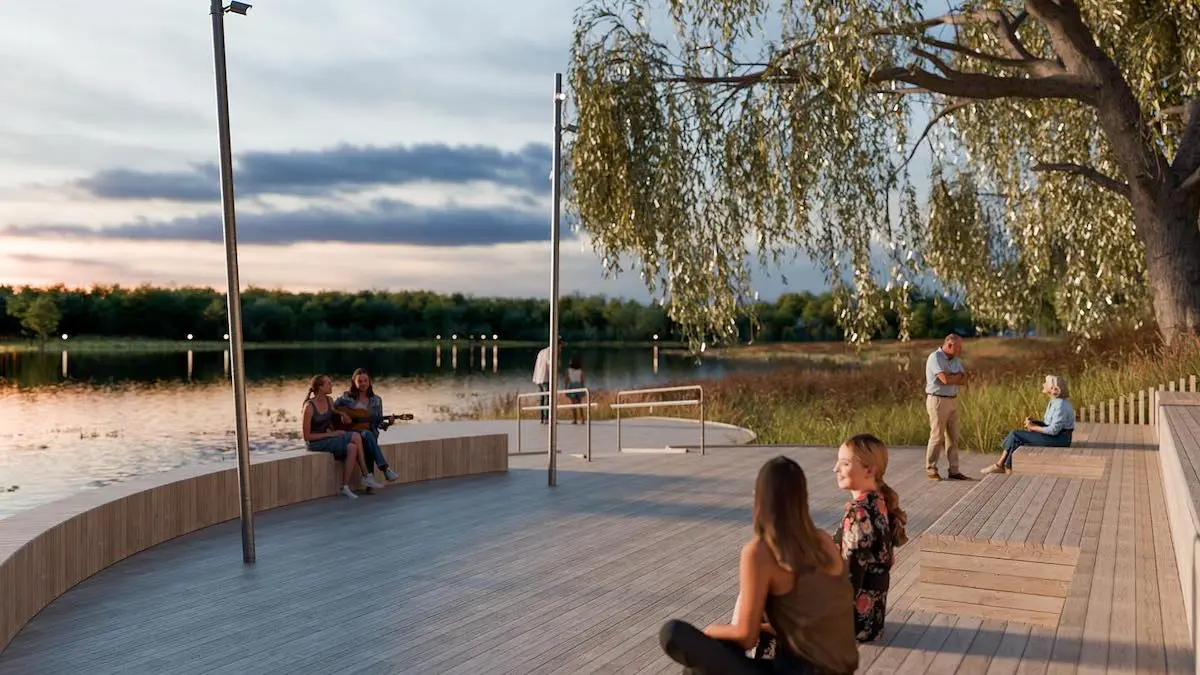 На набережній річки Здвиж планують побудувати амфітеатр-пірс. Насамперед він буде призначений для психологічного відновлення ветеранів та військових. На майданчику можна буде проводити різноманітні заходи: спортивні заняття, збори громади, кінопокази тощо.