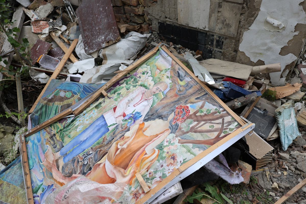 Також з-під завалів дістали твори Марії Котляревської, але вони потребують реставрації. А найбільше постраждали арткостюми, текстиль і вишивка. Вони також потребуватимуть фахової реставрації, допомогти з якою вже погодились у ЮНЕСКО.
