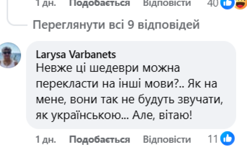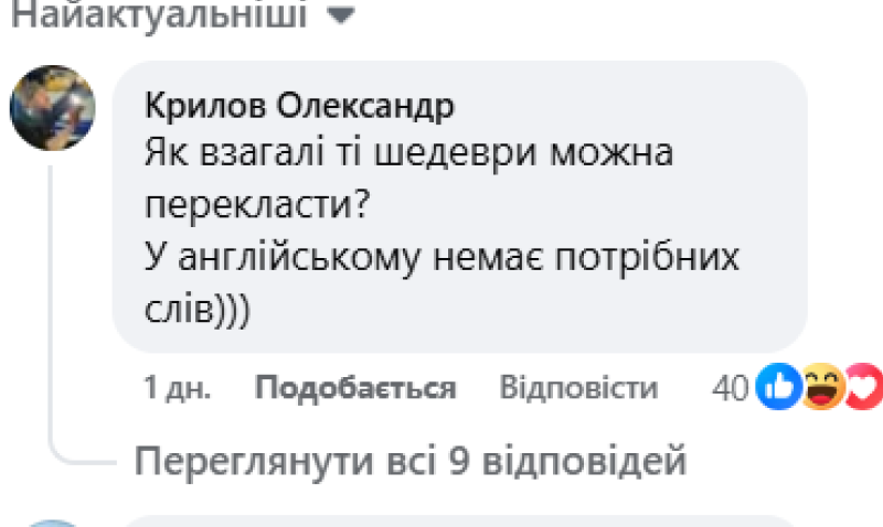 У коментарях під дописом драматурга користувачі дивуються, як його п'єси можливо перекласти на іноземну та кажуть, що в англійській мові "немає потрібних слів".