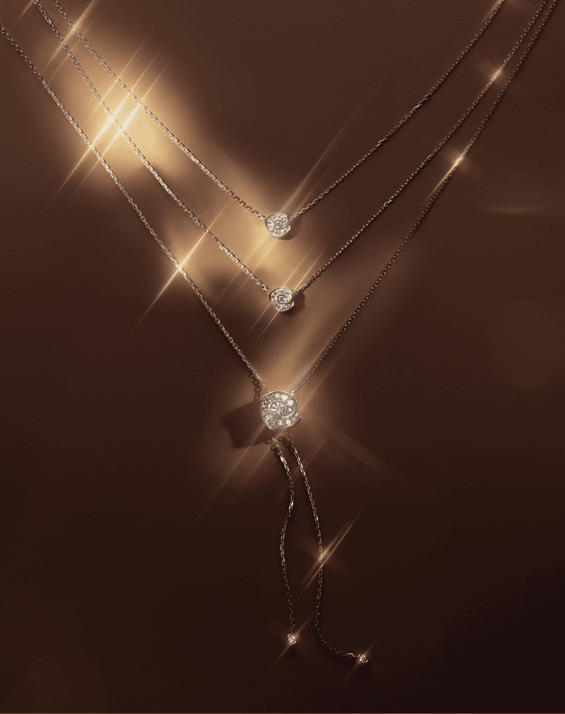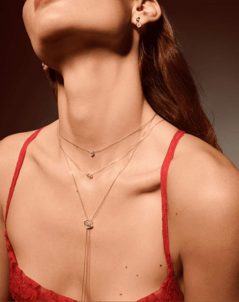 У прикрасах втілена графічна форма троянди, в центрі якої — акцентний діамант, мов серце квітки, яке огортають спіральні вигини пелюсток. Троянди в найяскравішому комплекті прикрас мають центральні діаманти вагою 0,3 карата — для насиченого святкового мерехтіння.