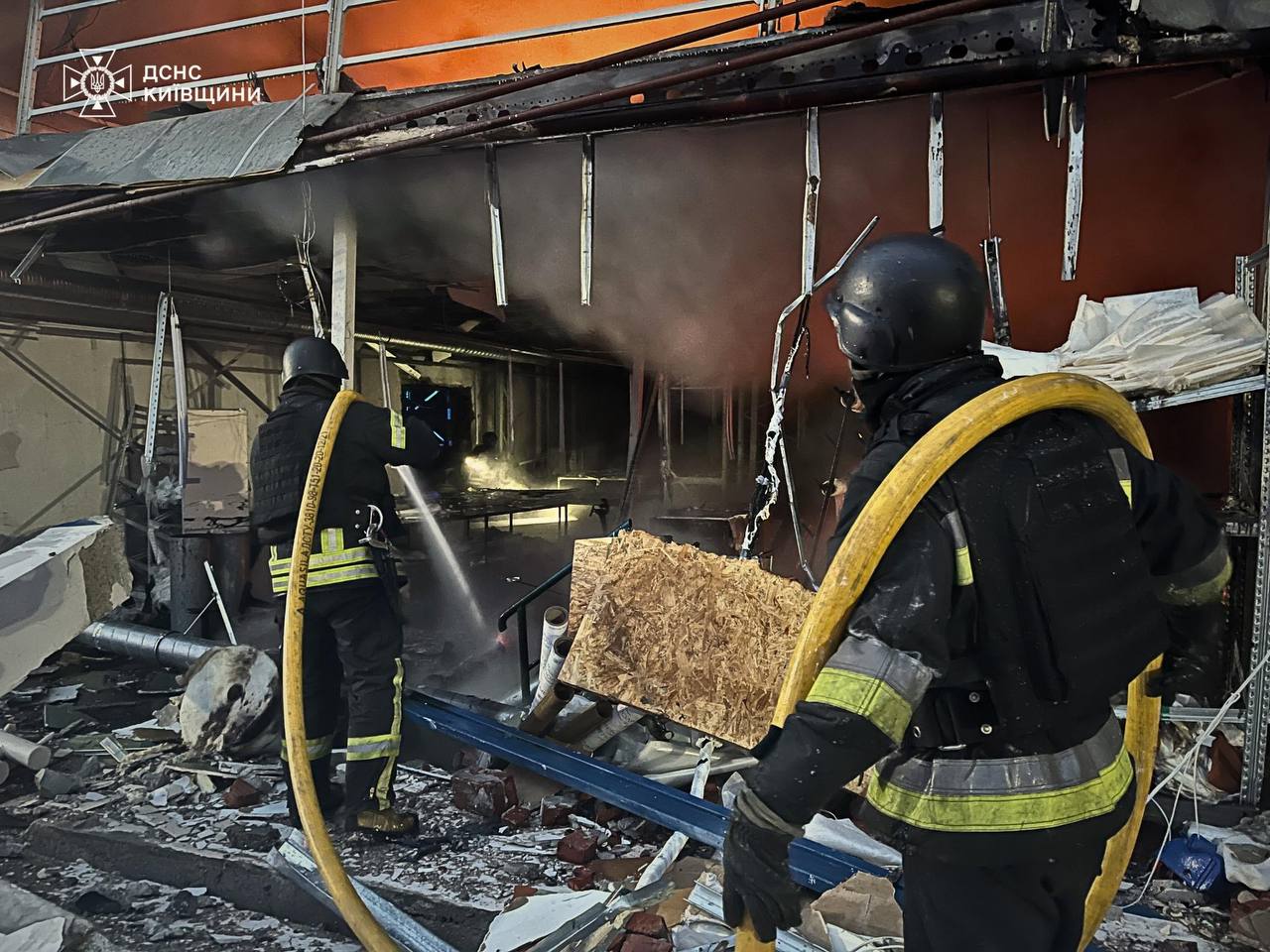 Також від ракетно-дронової атаки були пошкоджені будівлі на Київщині. В Обухівському районі загорілись нежитлові приміщення. А у Бориспільському — уламки збитих БпЛА пошкодили дев'ять приватних будинків та автівку. Попередньо обійшлось без постраждалих та загиблих.
