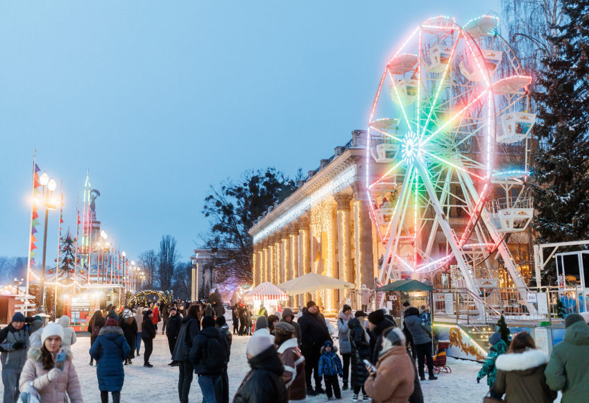 На центральній площі ВДНГ традиційно працюватимуть зимова гірка, колесо огляду, карусель та екстремальні атракціони. Поруч розгорнеться Різдвяний ярмарок із глінтвейном, смаколиками, стравами на грилі й крафтовими сувенірами, а далі працюватиме Тепла алея з фудкортом, новорічними мелодіями та живими виступами у вихідні.