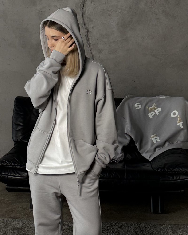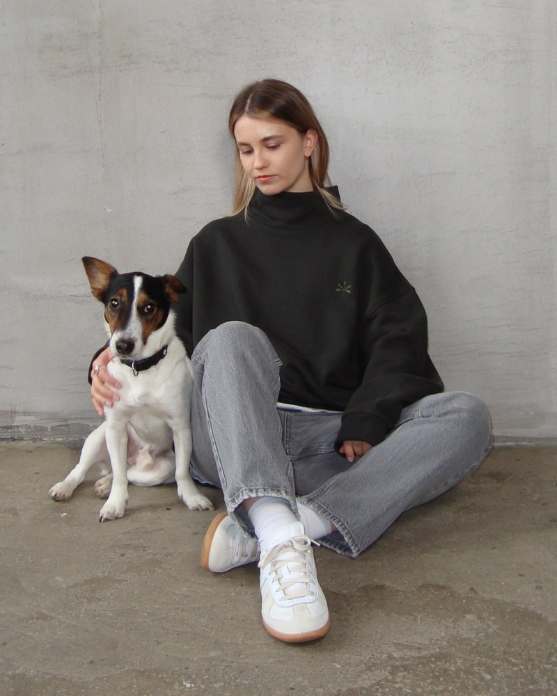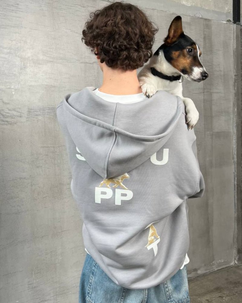 Принт на худі має на меті нагадати про тих, хто не може попросити допомоги, але щодня чекає на підтримку. Частину прибутку від колекції бренд передасть на підтримку українських притулків для тварин.