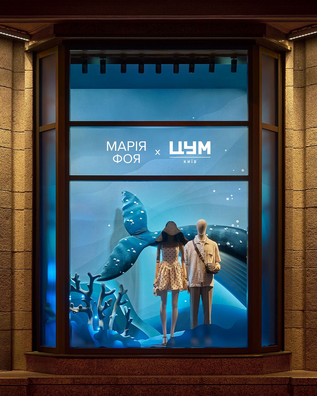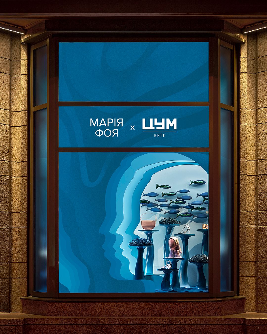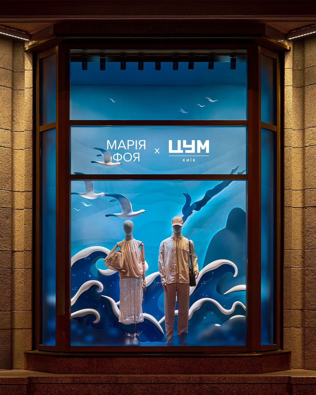 Київський ЦУМ презентував нові сезонні арт-вітрини, створені разом з київською ілюстраторкою Марією Фоєю. Головною темою стала вода, яка символізує занурення у свій внутрішній світ.