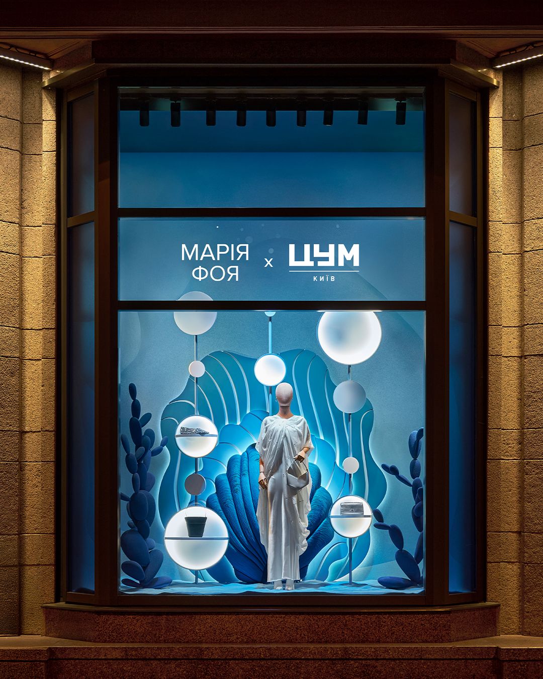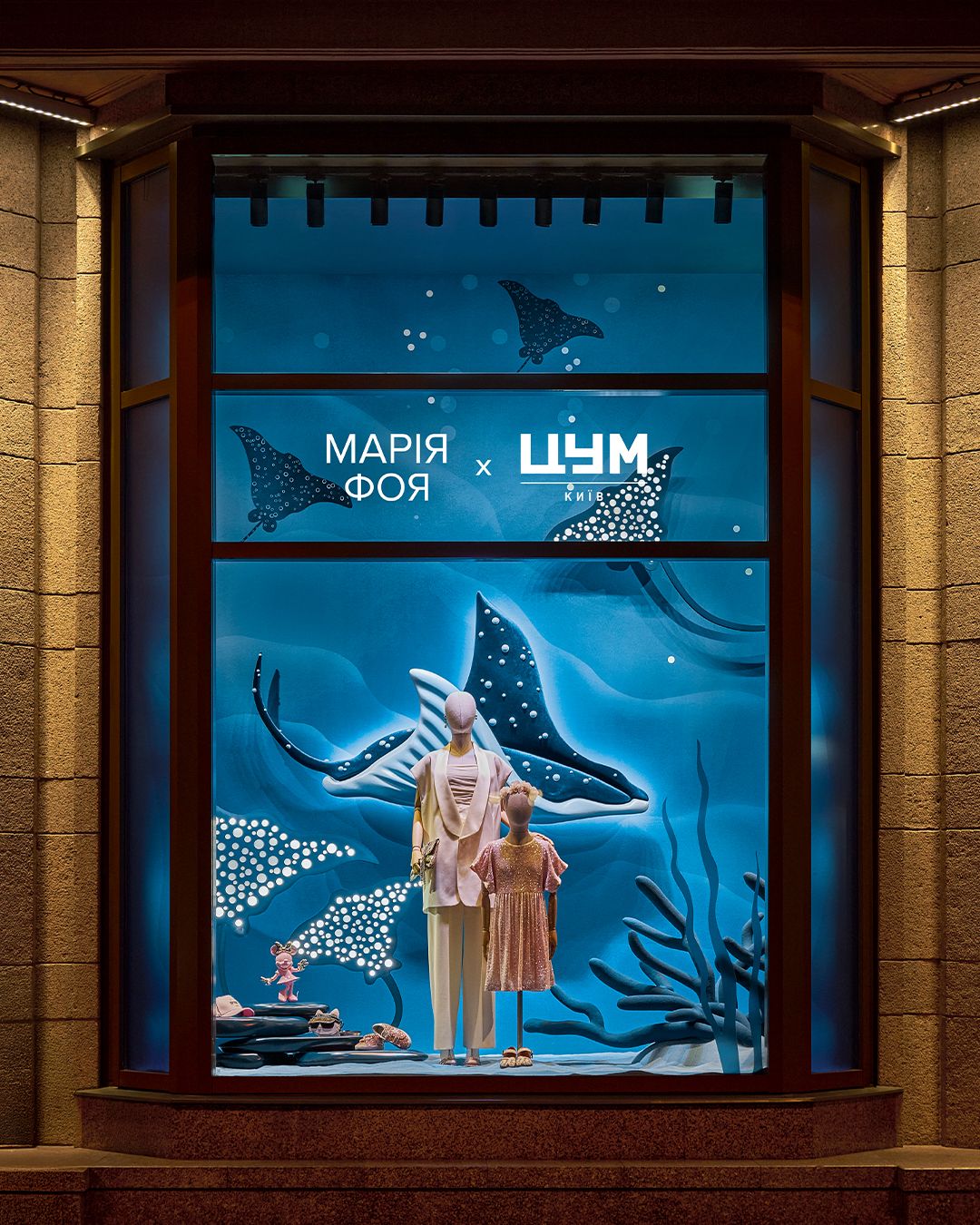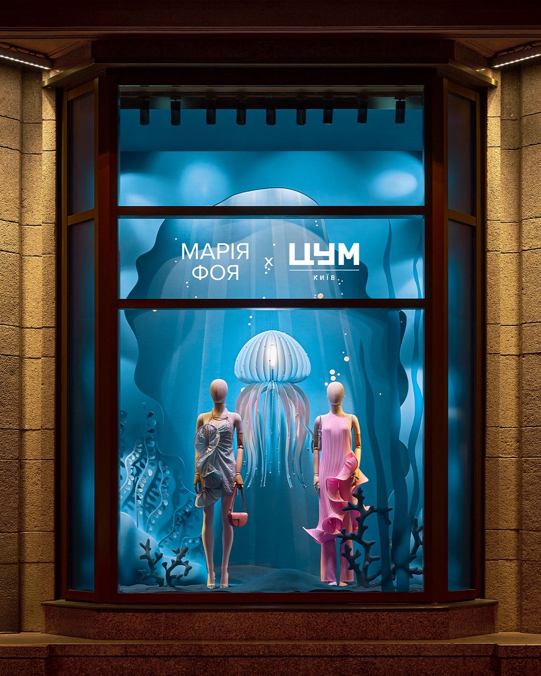 Київський ЦУМ презентував нові сезонні арт-вітрини, створені разом з київською ілюстраторкою Марією Фоєю. Головною темою стала вода, яка символізує занурення у свій внутрішній світ.