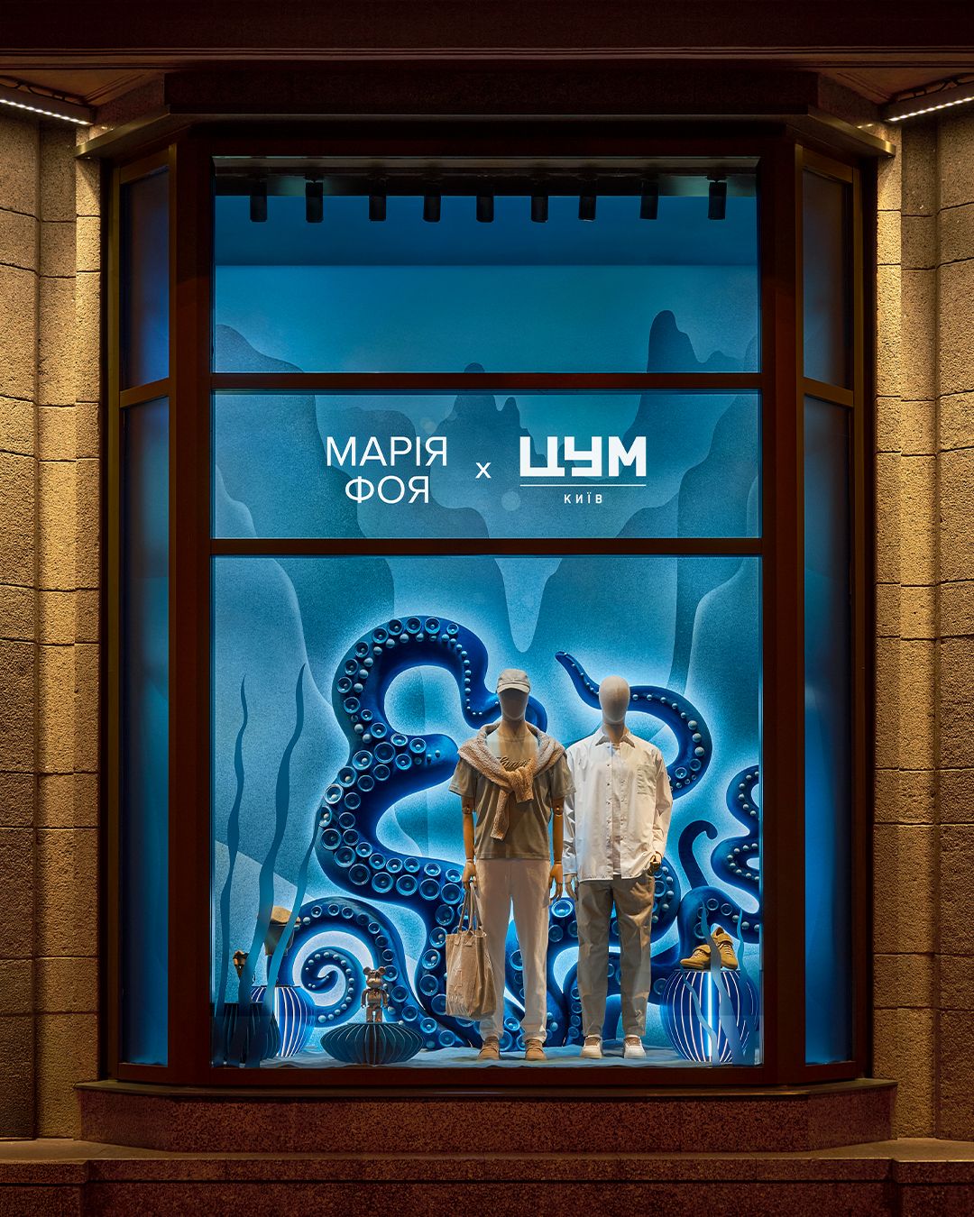 ЦУМ презентував нові сезонні вітрини, створені ілюстраторкою Марією Фоєю: на них море, чайки та восьминоги