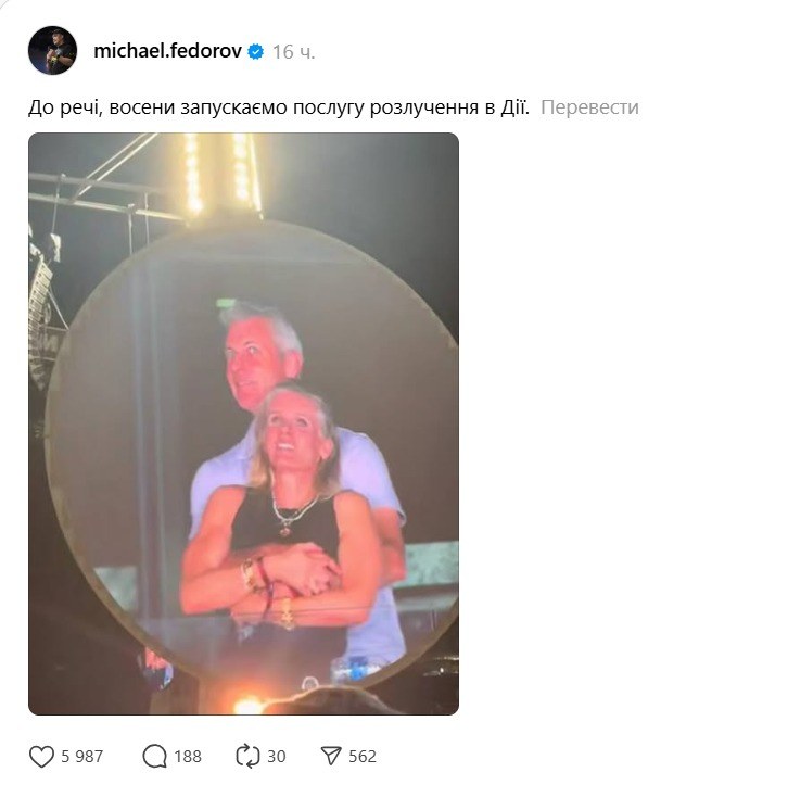 Також Федоров анонсував послугу розлучень у "Дії" у своєму Tik-Tok.