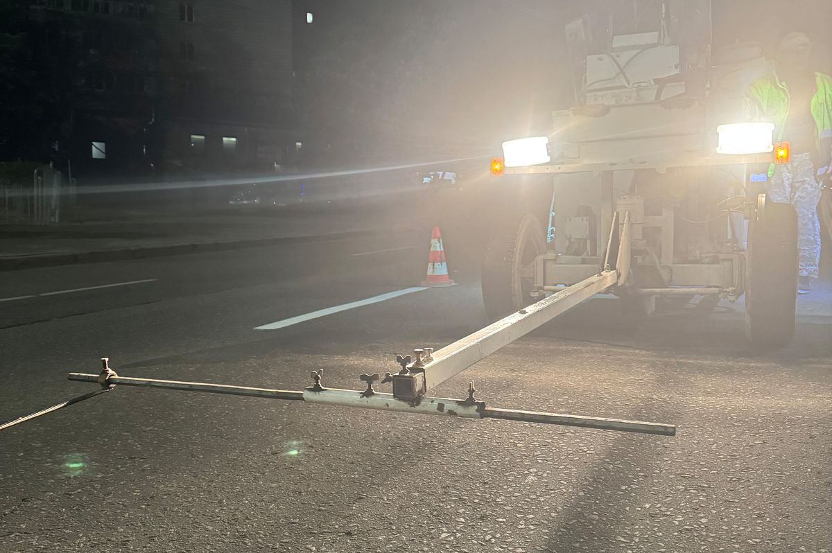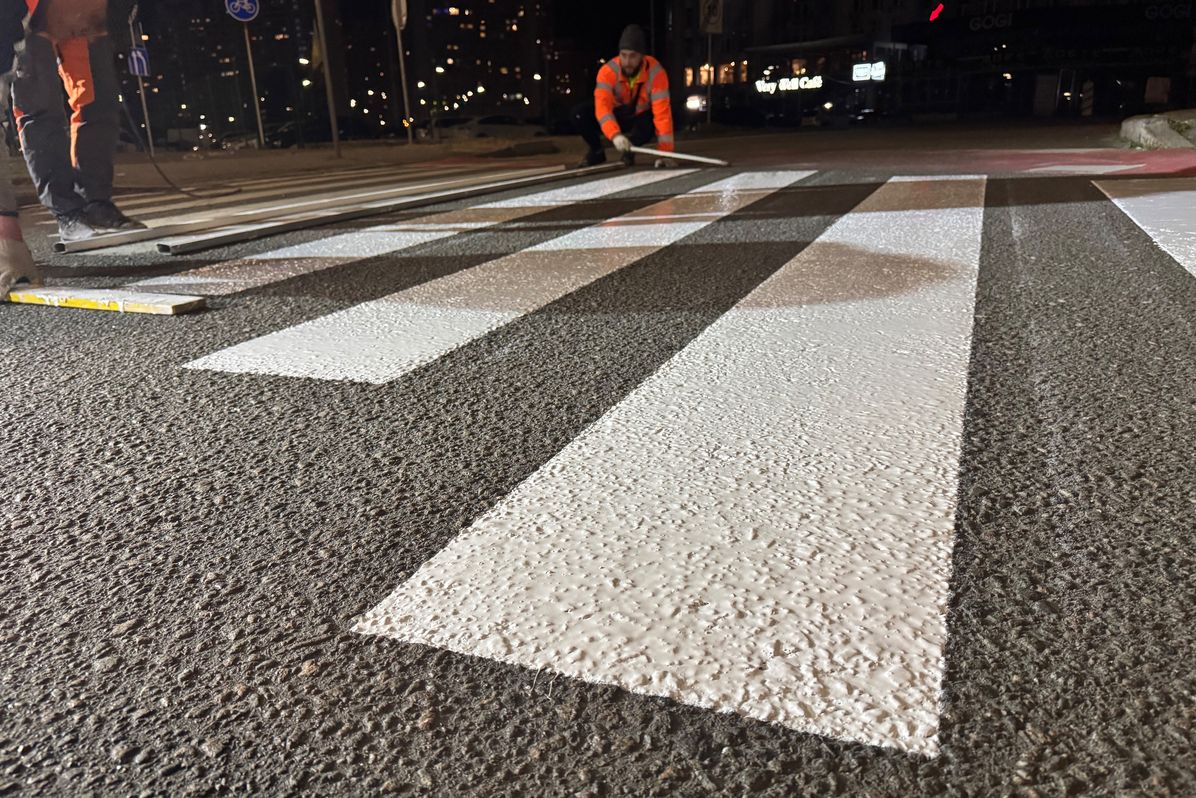 У Києві поновлюють дорожню розмітку за допомогою спеціального пластику: ось як це відбувається