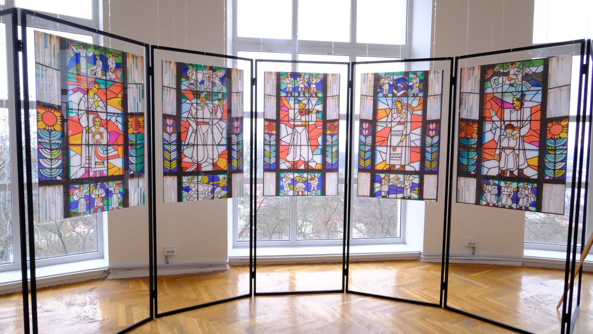Під час облоги Маріуполя всі вітражі були знищені. Тож експозиція водночас має важливу складову — демонструє злочини російських окупантів, знищення української історії та ідентичності.
