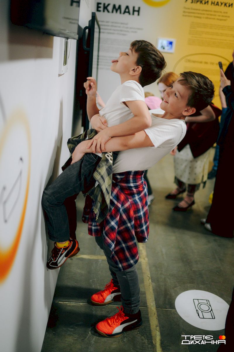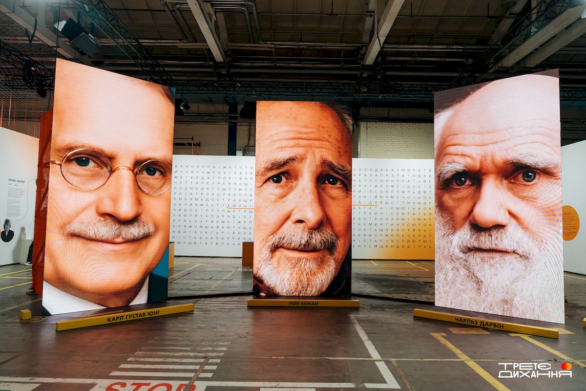 - У "Знайомстві з емоціями" гостей зустрінуть великі екрани з обличчями Чарльза Дарвіна, Пола Екмана й Карла Юнга, які усміхаються та демонструють різні емоції завдяки ШІ. Також команда проєкту вперше переклала "Атлас емоцій" Пола Екмана.