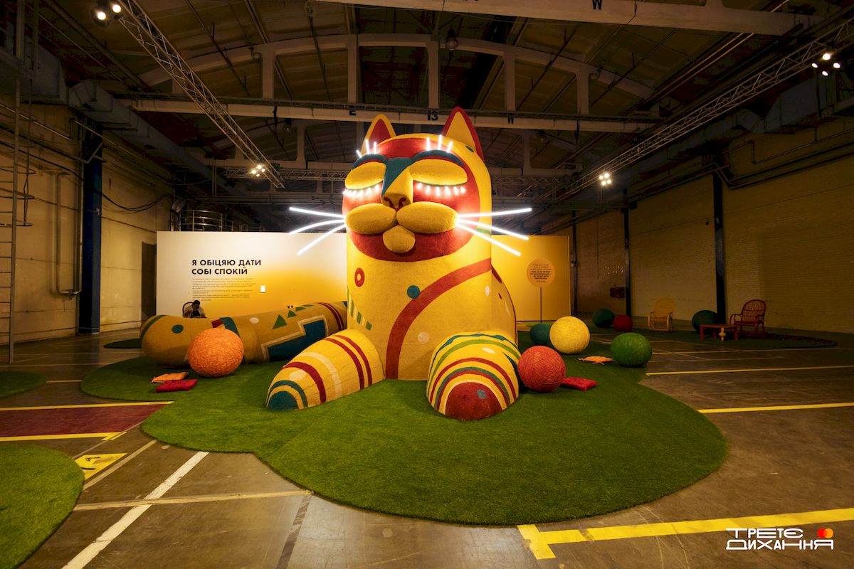- У зоні "Дай собі спокій" встановили величезного кота, який муркоче, а на його лапах та хвості можна присісти й розслабитися. Також тут представлений VR-досвід — політ над космічною станцією.