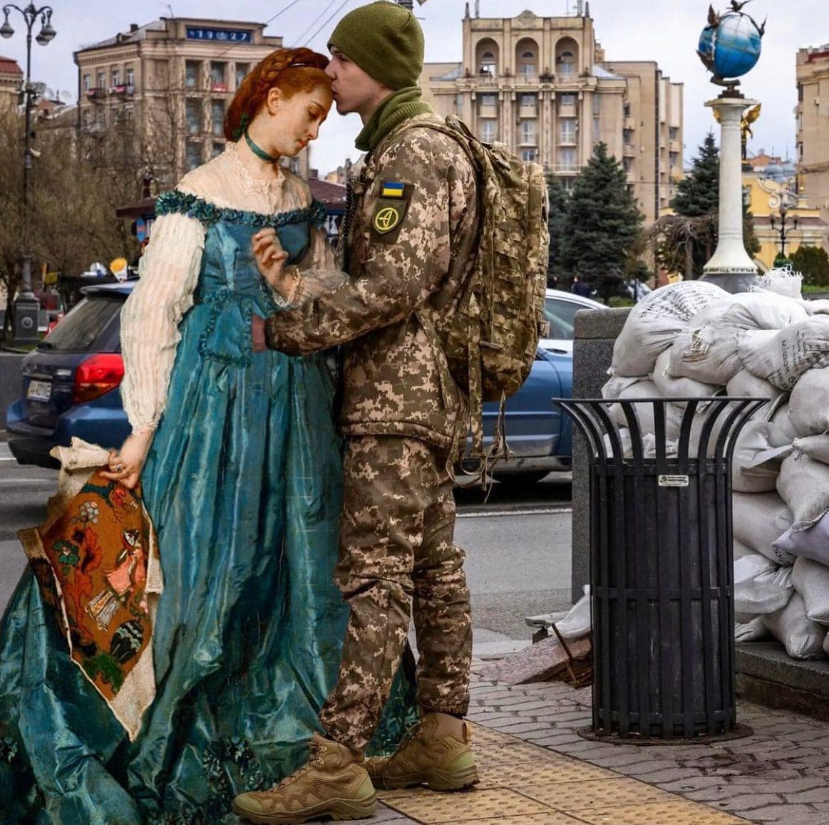Коли воєнні світлини поєднуються з класичними західними картинами, минуле змішується з теперішнім — Захід вступає у діалог з Україною. Ці зіставлення долають часові та географічні кордони й пов'язують нас за допомогою емоцій, попри наші культурні відмінності, — каже Фанні Лешевальє.