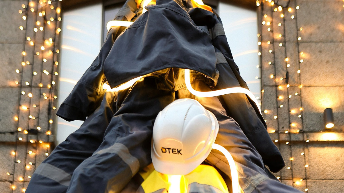 "Ялинка світла" складається з одягу реальних людей, які щодня відновлюють електропостачання після обстрілів.