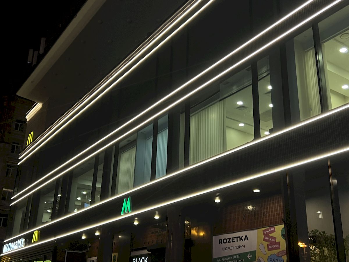 Ремонт був переважно "косметичним" та не передбачав особливих змін у фасаді будівлі. Тут закріпили або замінили плитку, що відпадала, очистили її від забруднення та нанесли покриття для захисту від вологи й перепадів температури. Оновили скління вікон на енергоефективне (його зовнішній вигляд майже не змінився) та встановили художню підсвітку. Також фасад очистили від зайвої реклами.