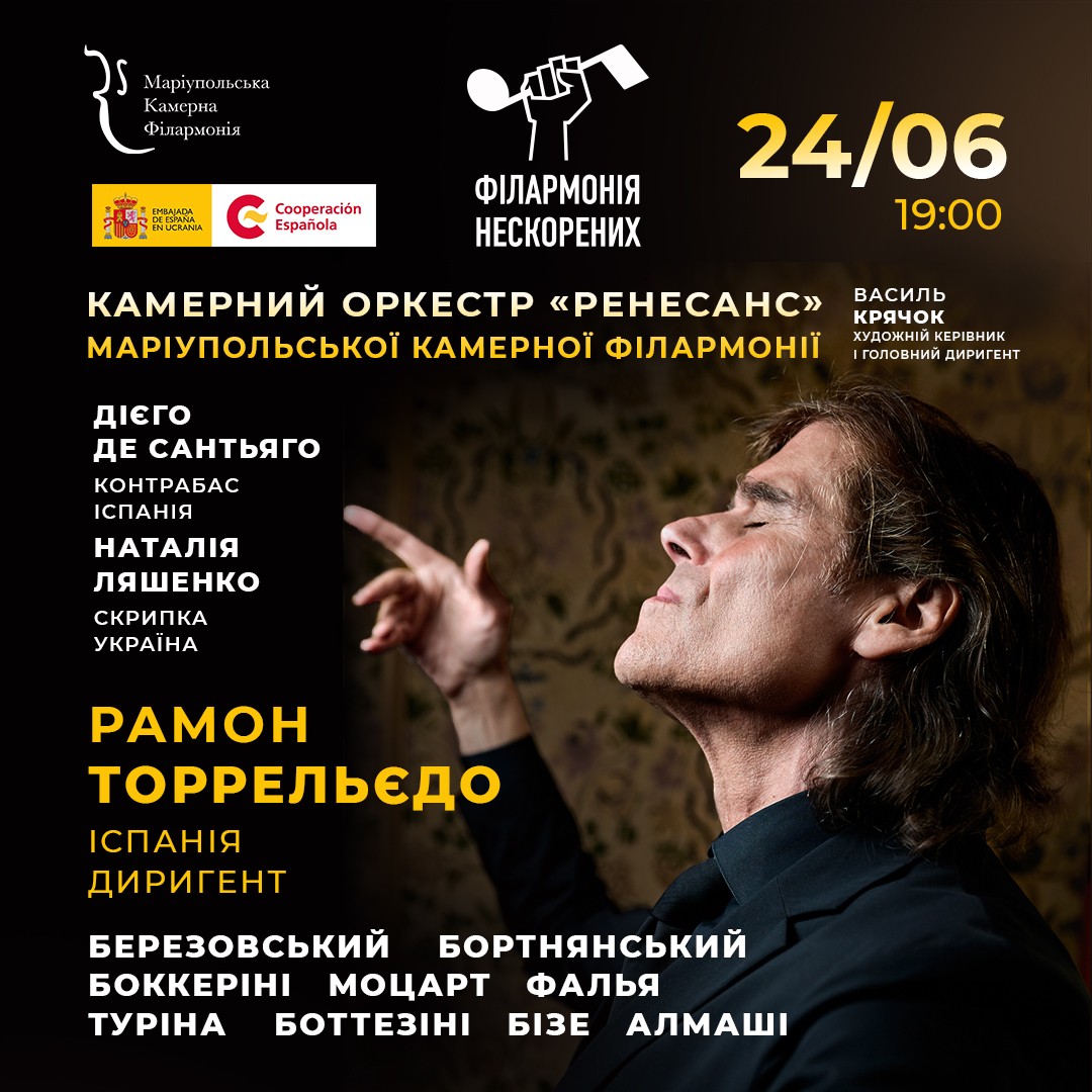24 червня в Національній філармонії України відбудеться непересічна подія: разом із легендарним оркестром маріупольської камерної філармонії "Ренесанс" виступить не менш легендарний іспанський диригент Рамон Торрельєдо.