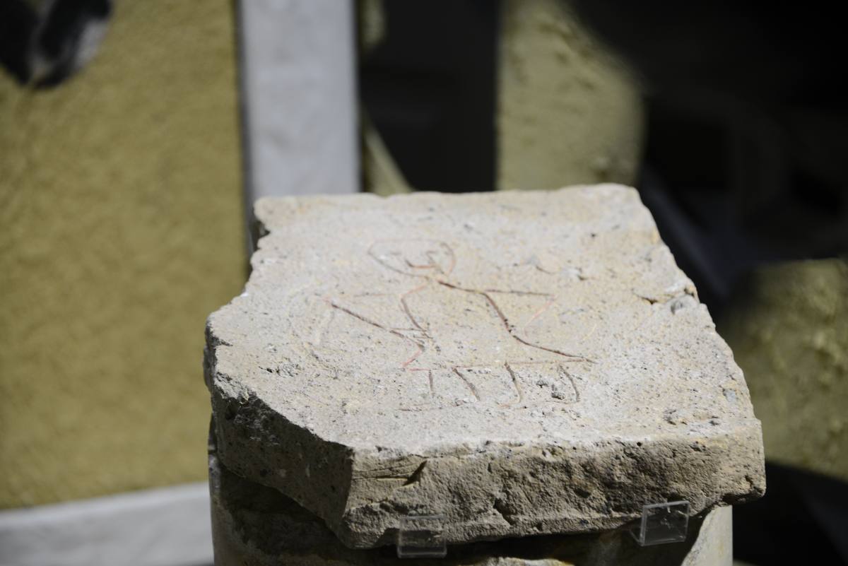Поруч з роботою сучасного художника XXI століття можна побачити давньоруське графіті XI століття — жартівливий шарж на одного з будівничих Успенського Собору. Стародавню плінфу з малюнком людини у гордовитій позі знайшли під час розбору руїн Успенського собору у 1950-х роках.