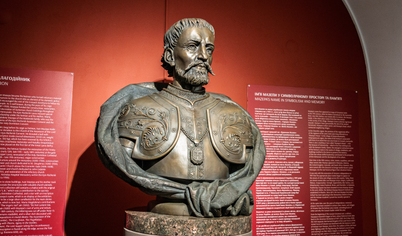 Погруддя є найточнішим скульптурним зображенням Івана Мазепи, його можна побачити у першій залі виставки "Мазепа. Стратегія європейської України" у 4-му корпусі Заповідника. Також серед експонатів: документи мазепинської епохи, твори мистецтва, коштовності, зброя, стародруки, предмети побуту козацької старшини та інші предмети, що презентують Україну кінця XVII-початку XVIII ст.