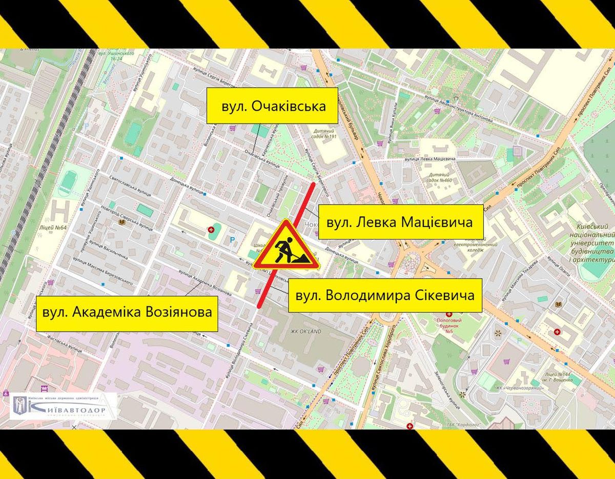 З 16 квітня до 14 травня на вулицях Левка Мацієвича та Володимира Сікевича у Солом'янському районі частково обмежуватимуть рух транспорту. Про це повідомили у "Київавтодорі".