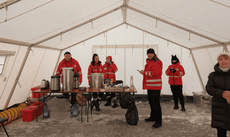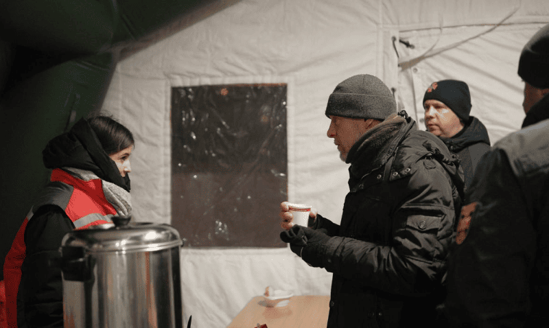 Кожен з них оснащений тепловими гарматами, генератором та місцем відпочинку для відвідувачів. Там можна підзарядити гаджети, випити гарячого чаю чи просто поспілкуватися.