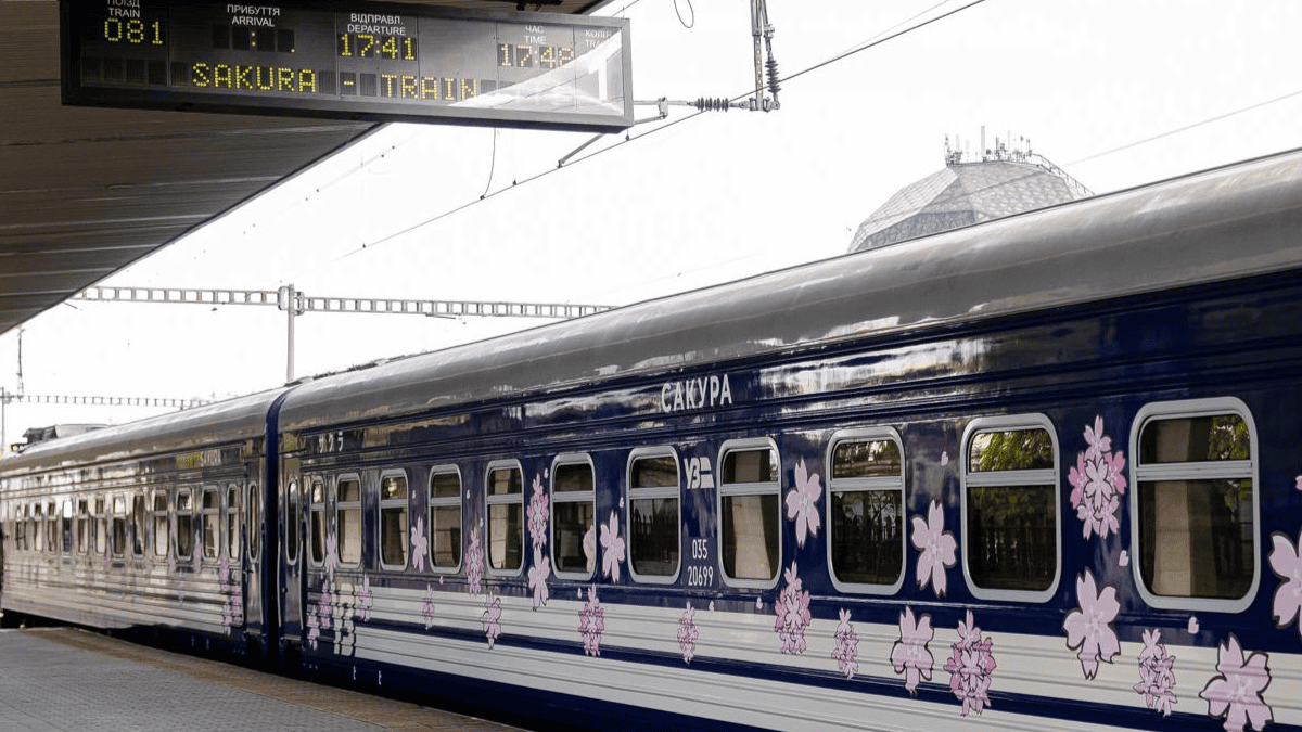 Новий флагманський потяг "Сакура" вирушив у перший рейс 28 квітня. До його складу увійшли нові вагони, що були виготовлені в Україні у 2026 році, а також дитячі вагони, модернізовані на власних потужностях Укрзалізниці.