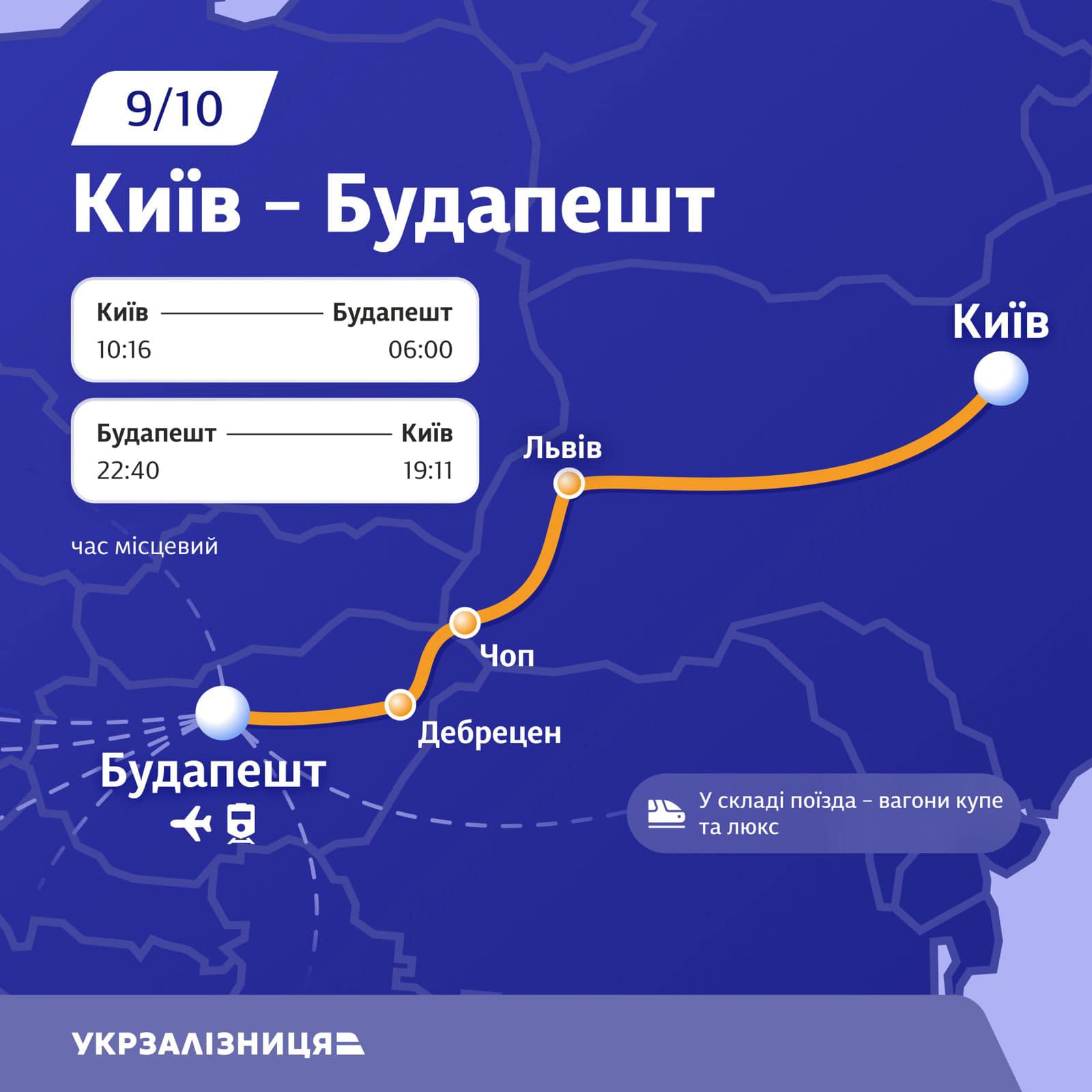 Поїзд із Києва до Будапешта почне курсувати з 15 грудня.
