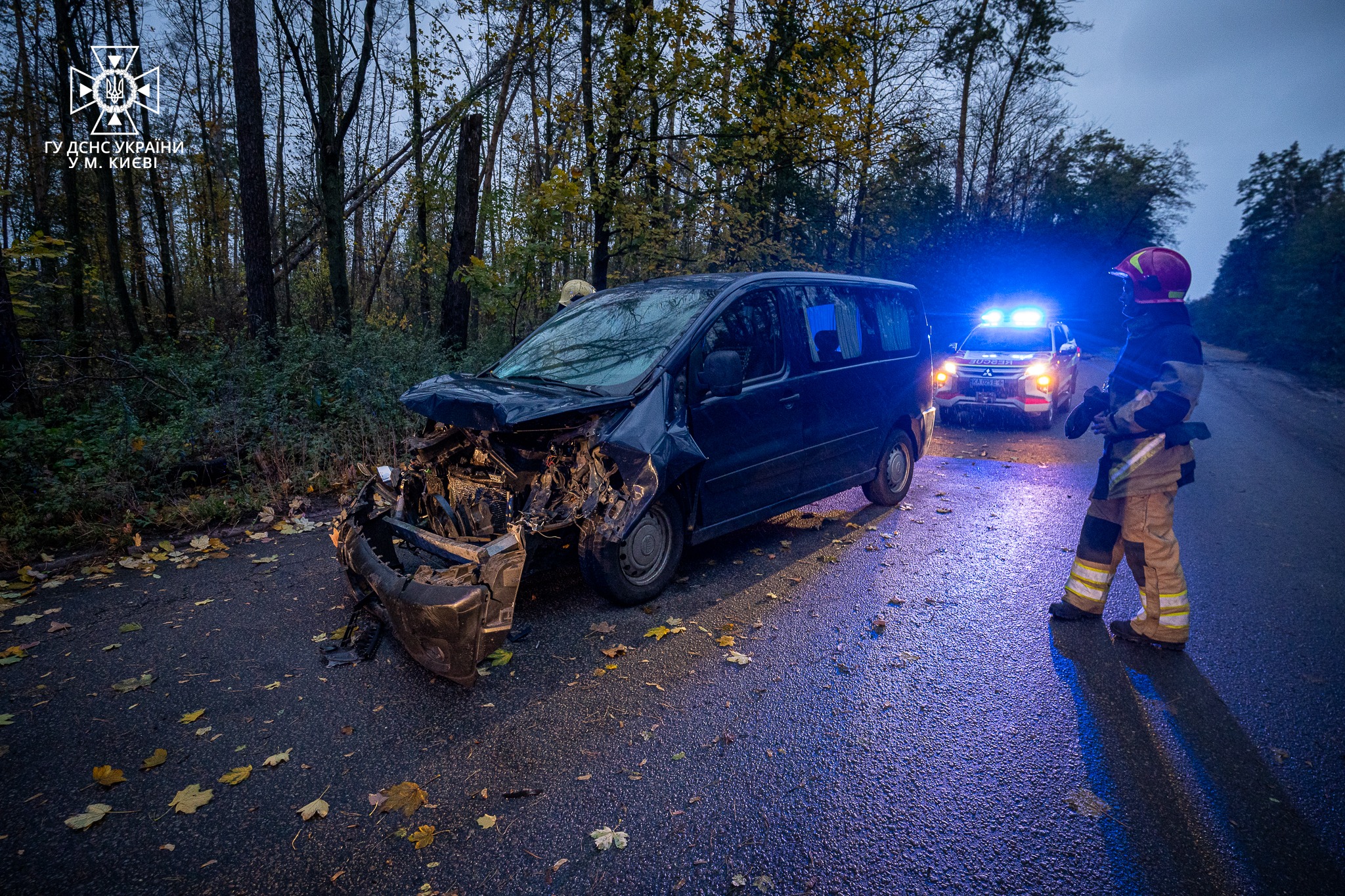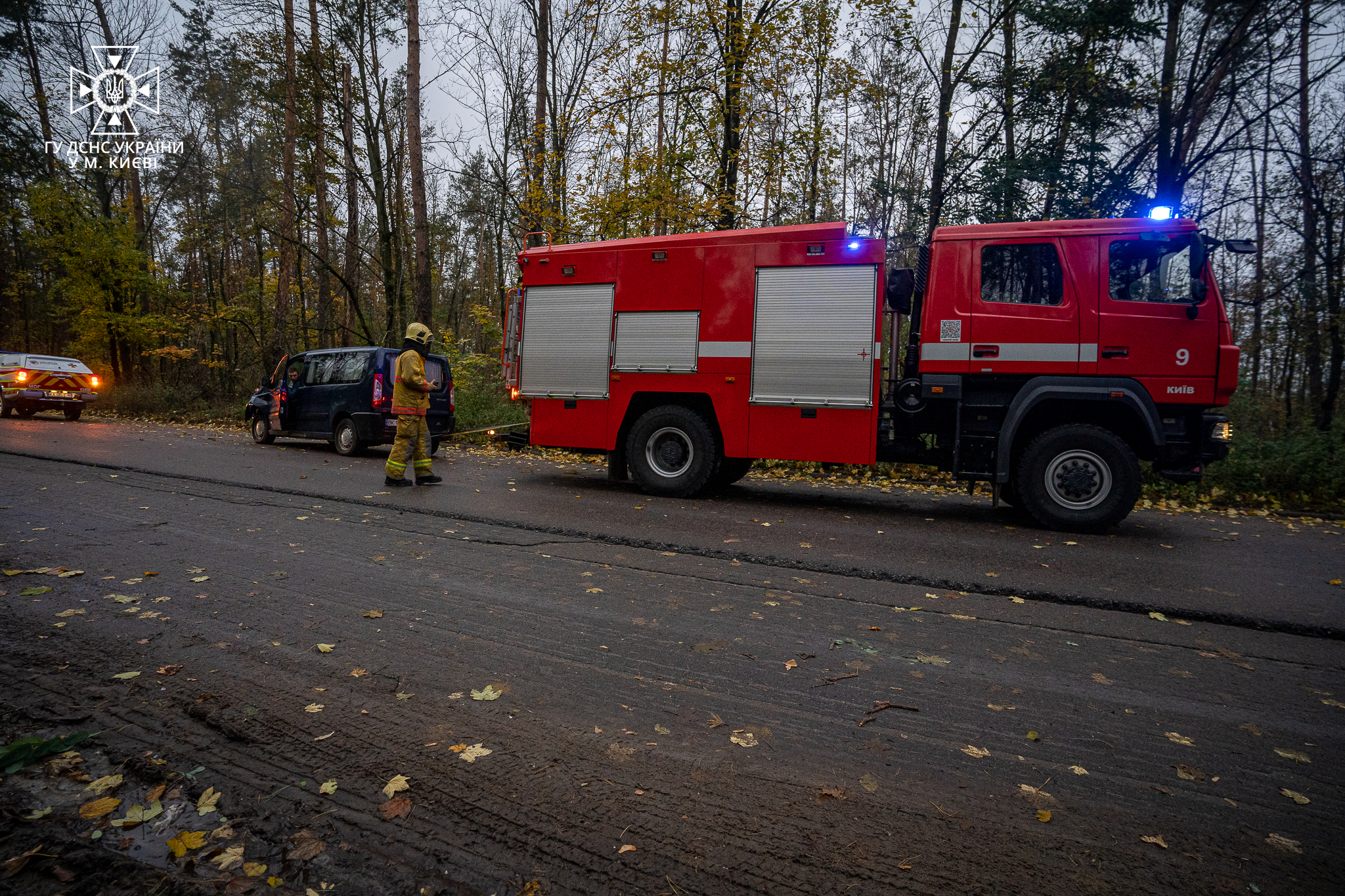 На просп. Берестейському на автівку впало дерево. Людина, яка перебувала в авто, від госпіталізації відмовилася.