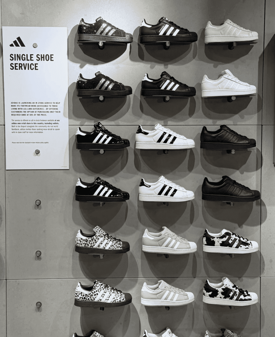 В магазинах adidas по всій Україні запустили ініціативу Single Shoe, що передбачає можливість придбати лише одну кросівку з пари людям, які мають відмінності нижніх кінцівок. Про це пише DTF Magazine.
