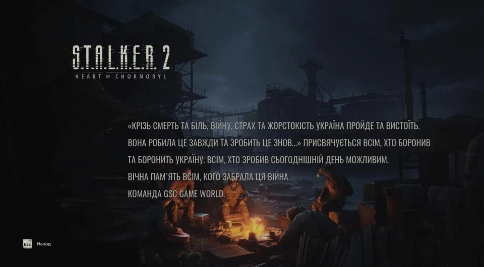 "S.T.A.L.K.E.R. 2: Серце Чорнобиля" — присвята захисникам