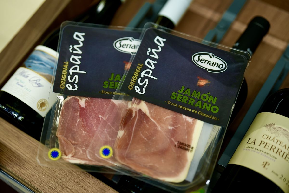 - Хамон Серрано Lonchas (2×60 г) — 119 грн за дві упаковки. Просто загорни у нього вершковий сир і руколу — смачно і стильно.
