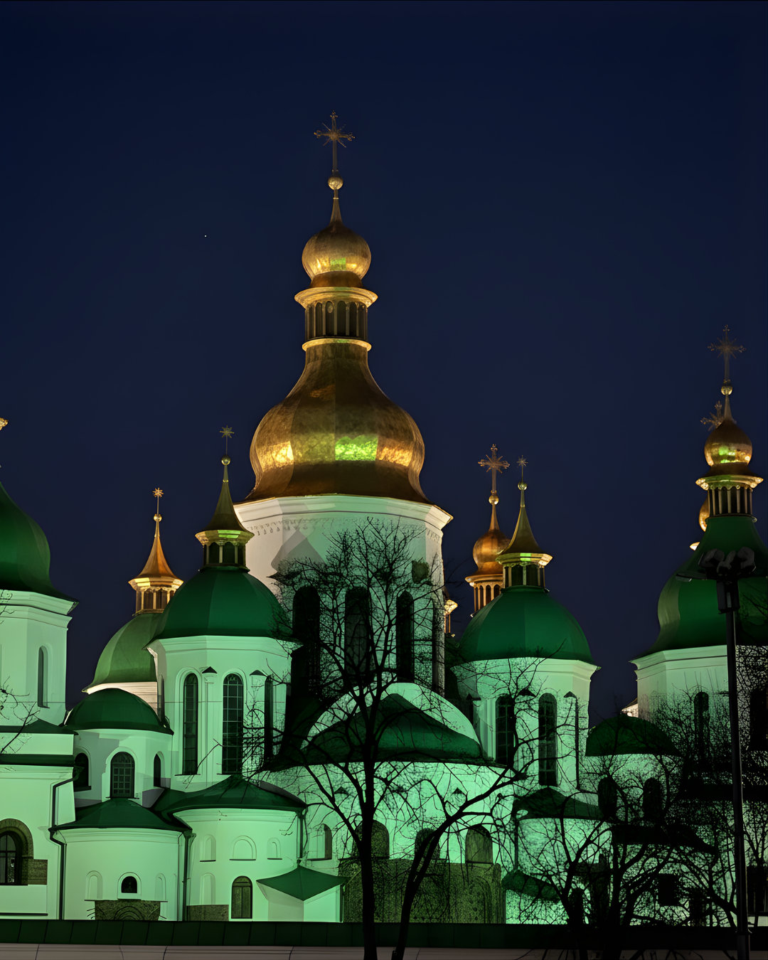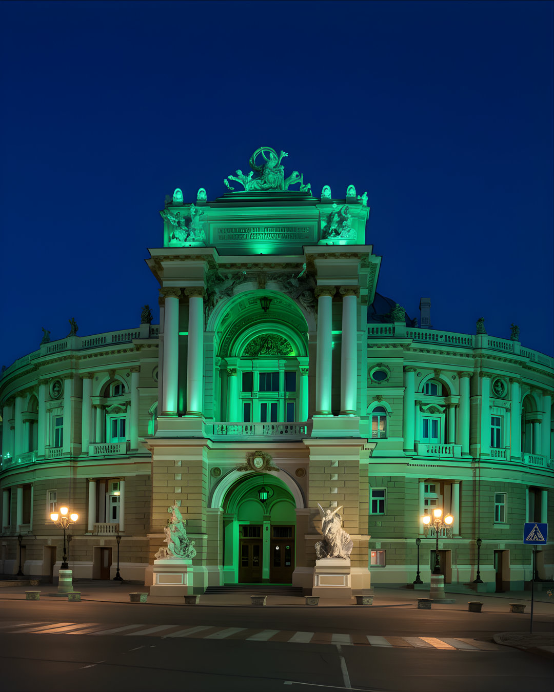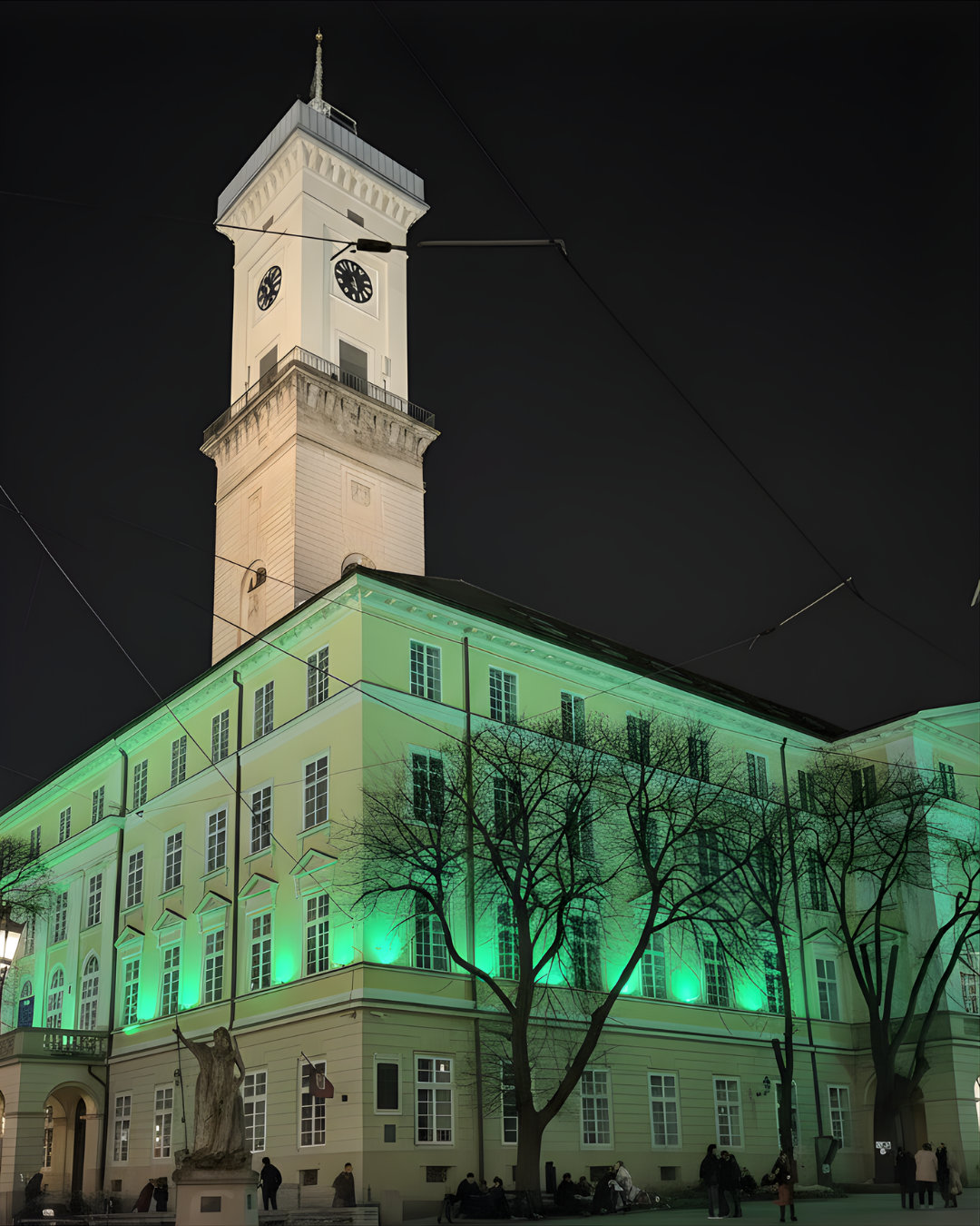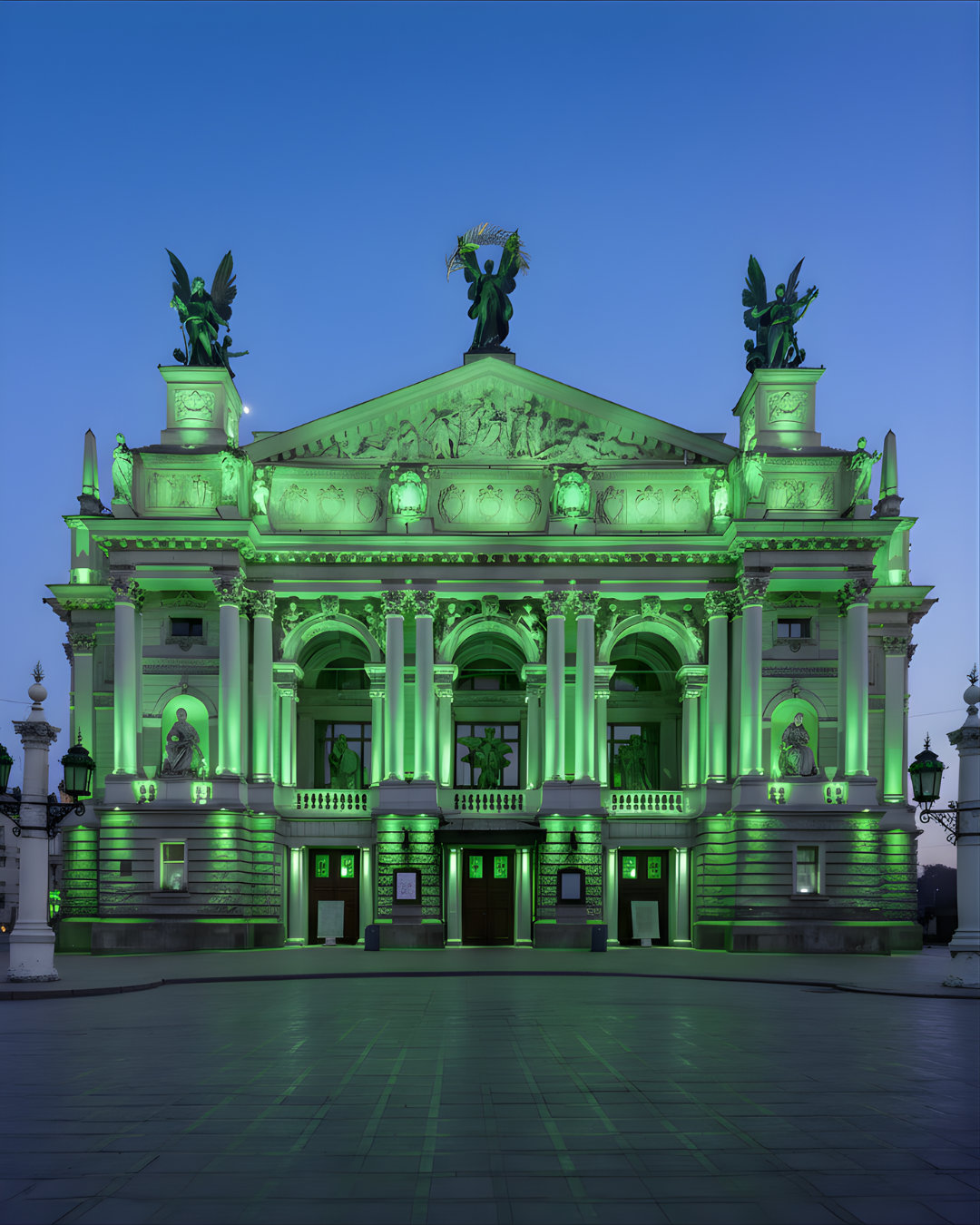Знакові архітектурні споруди України підсвітили магічним зеленим кольором у межах проєкту "Пробудження Мавки". Серед них — Софія Київська, Національний академічний театр опери та балету України ім. Т. Г. Шевченка, КВЦ "Парковий", Львівська Ратуша та інші.
