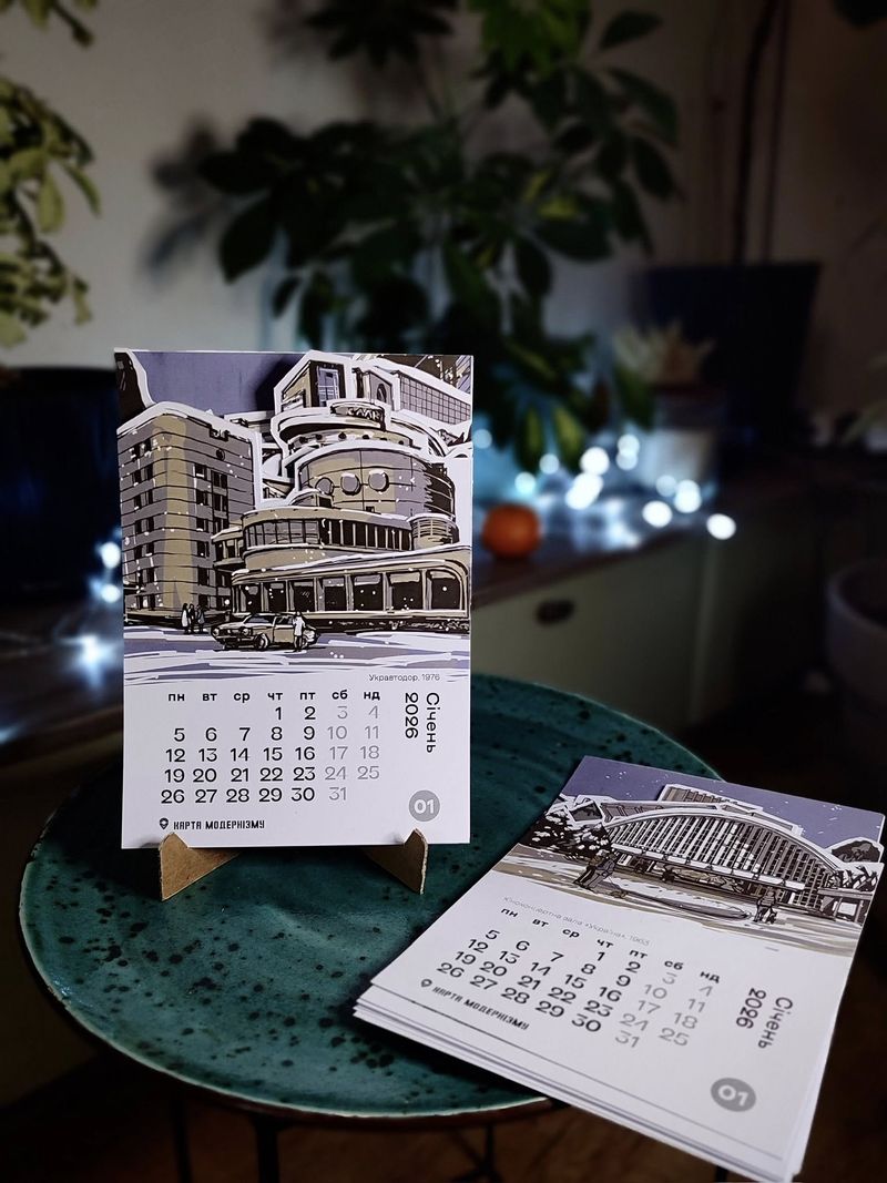 Проєкт "Карта модернізму" спільно з ілюстраторкою Тетяною Калиновською створили календарі зі стилізованими зображеннями модерністських будівель Києва та Харкова. Про це повідомила дослідниця архітектури модернізму Ельміра Еттінгер.