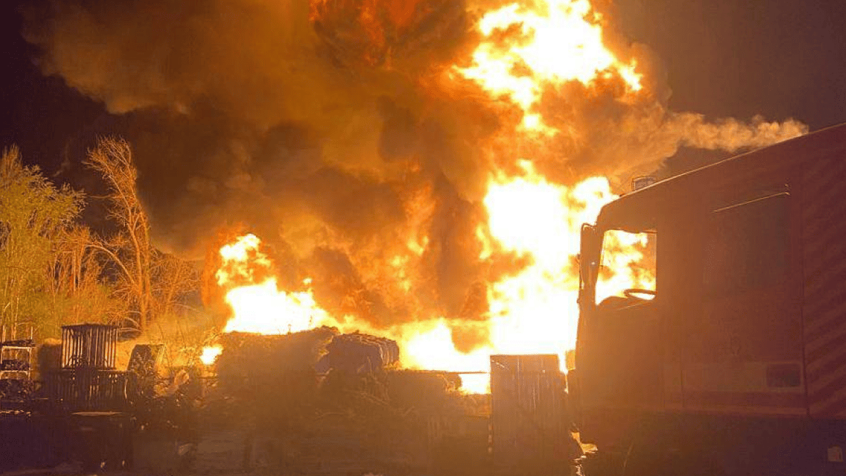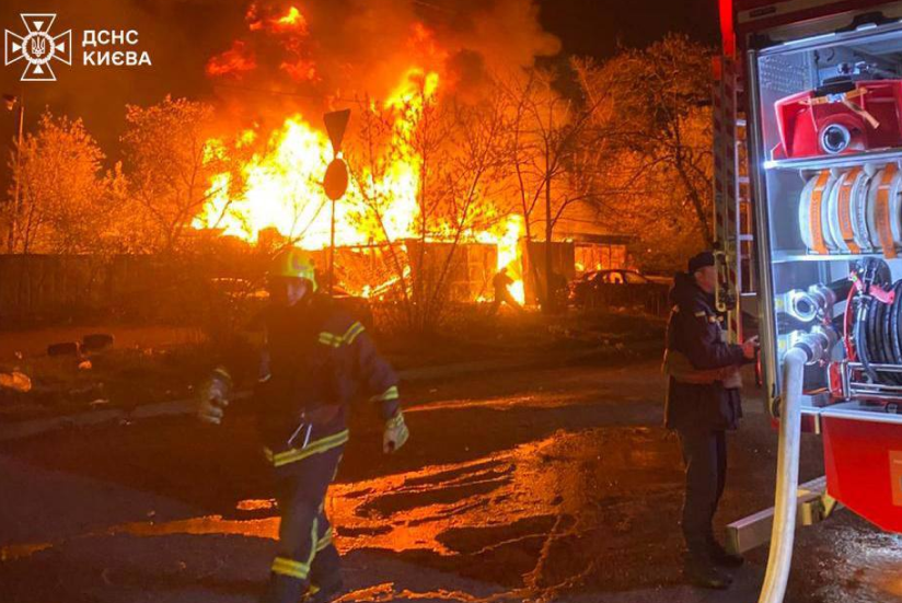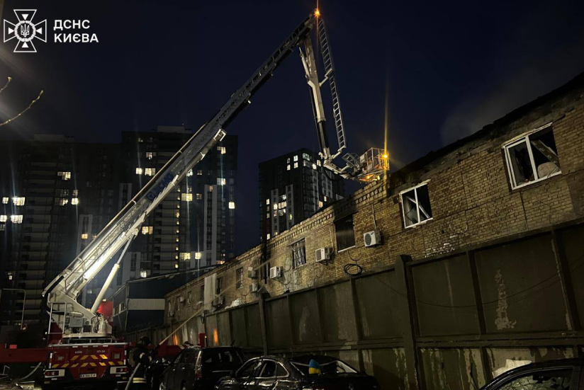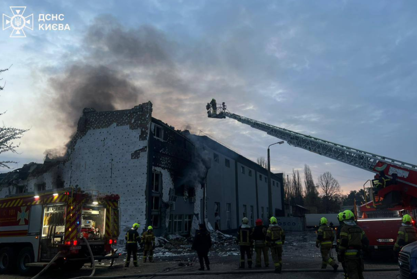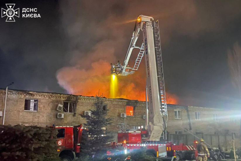 Пожежа на місці атаки на Київ. Фото: ДСНС
