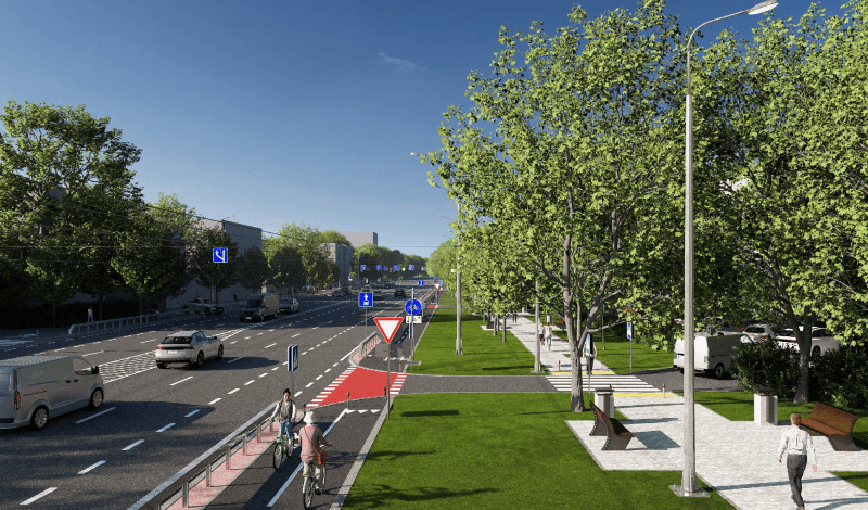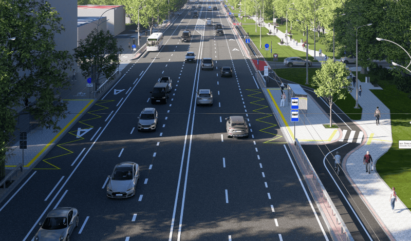 Планується збільшення пропускної спроможності проспекту завдяки облаштуванню окремих смуг накопичення для автомобілів, які здійснюють лівий поворот. Крім того, на пішохідних переходах і велопереїздах понизять бортовий камінь та облаштують тактильну навігацію.