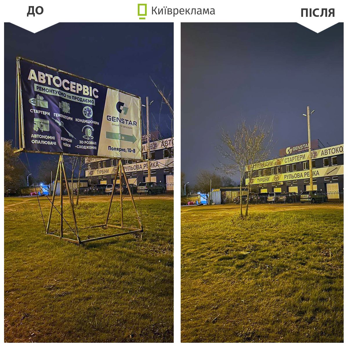 Більш як половину рекламних конструкцій власники прибирали самостійно — 1162 одиниці. А решту 903 демонтували фахівці "Київреклами".