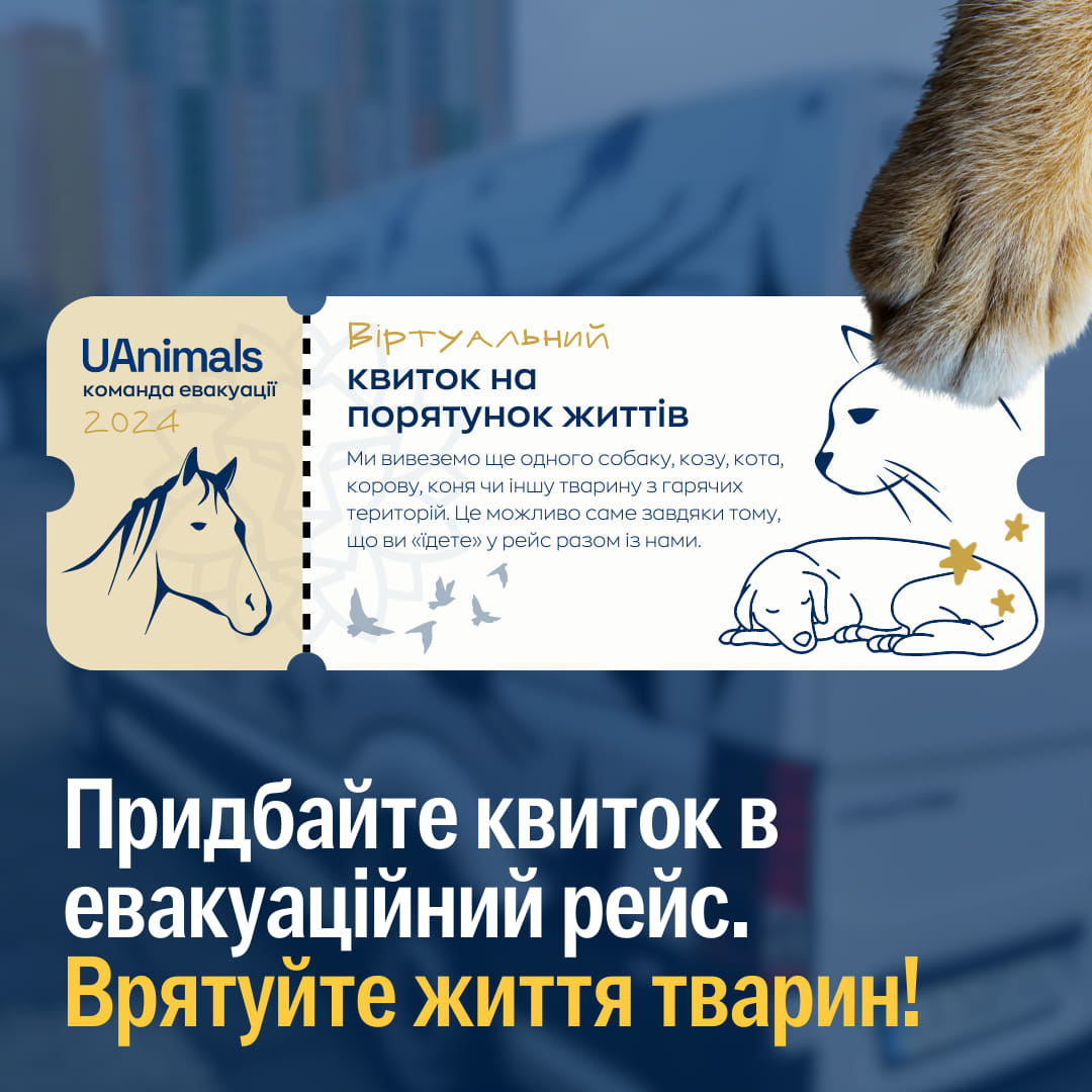 Зоозахисна організація UAnimals організувала евакуацію домашніх, диких і свійських тварин із зон бойових дій і прифронтових районів. Щоб допомогти волонтерам, можна купити віртуальний квиток на евакуаційний рейс. Про це йдеться на сторінці організації у Facebook.