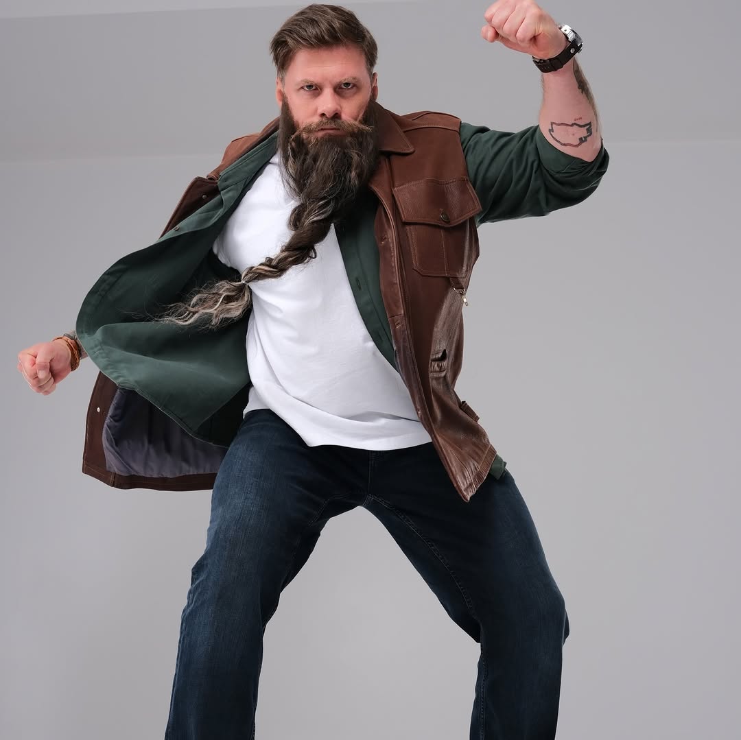 У "Каховському" в мене борода своя. У "Хрещатик 48/2", де я граю хоронителя Києва Кожум'яку, теж своя, але там до моєї бороди доплітали ще довгий шмат, тому в кадрі вона ефектна. На першому сезоні "Прикордонників" у мене була своя борода, а от уже в другому ми вирішили, що я буду без бороди, але з вусами.
