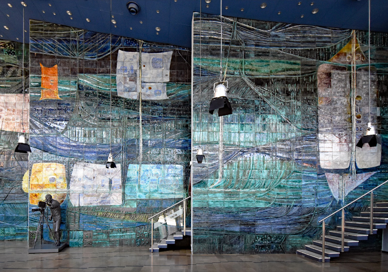 Нещодавно ми дізналися, що Укрпошта хоче демонтувати керамічне оздоблення, яке прикрашає вхід до зали Головпоштамту. Створила його видатна художниця Людмила Мєшкова — її керамічне панно "Земле, флюїди життя і розквіту світам Всесвіту посилай…" розміщене у штаб-квартирі ЮНЕСКО в Парижі.