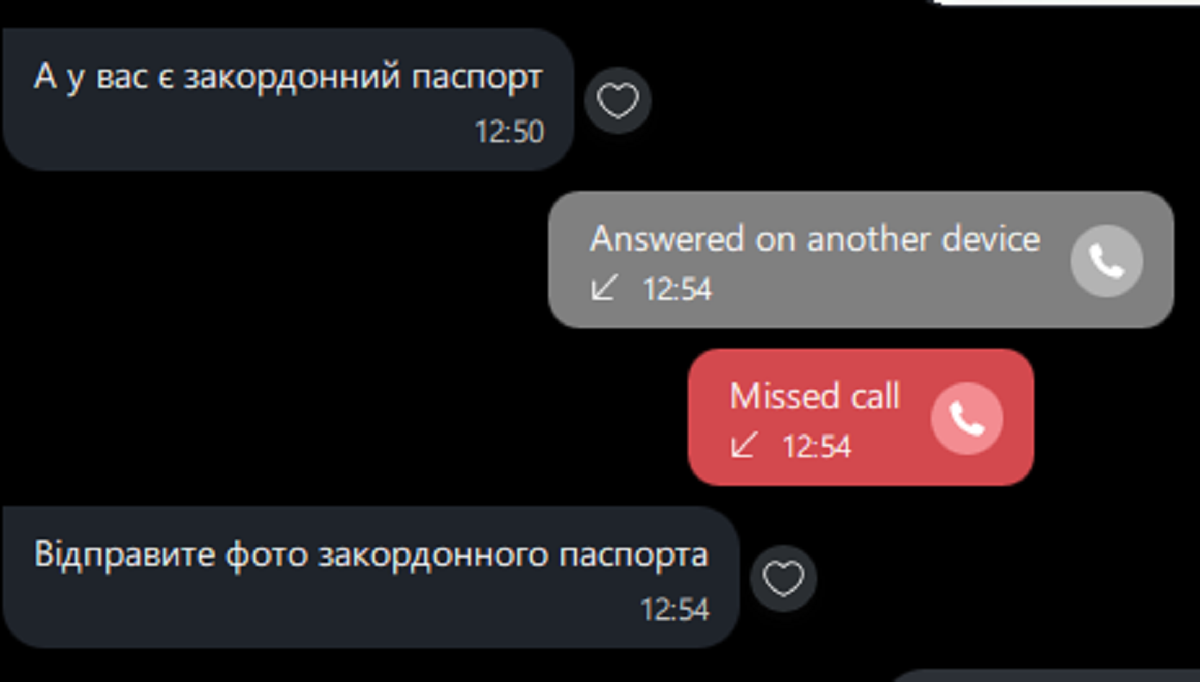 Щойно співрозмовник сповіщає про зацікавленість запропонованою вакансією, вербувальник просить надати фото документів для продовження процедури працевлаштування. Деякі маніпулятори намагаються поквапити жертву для швидшого отримання персональних даних.
